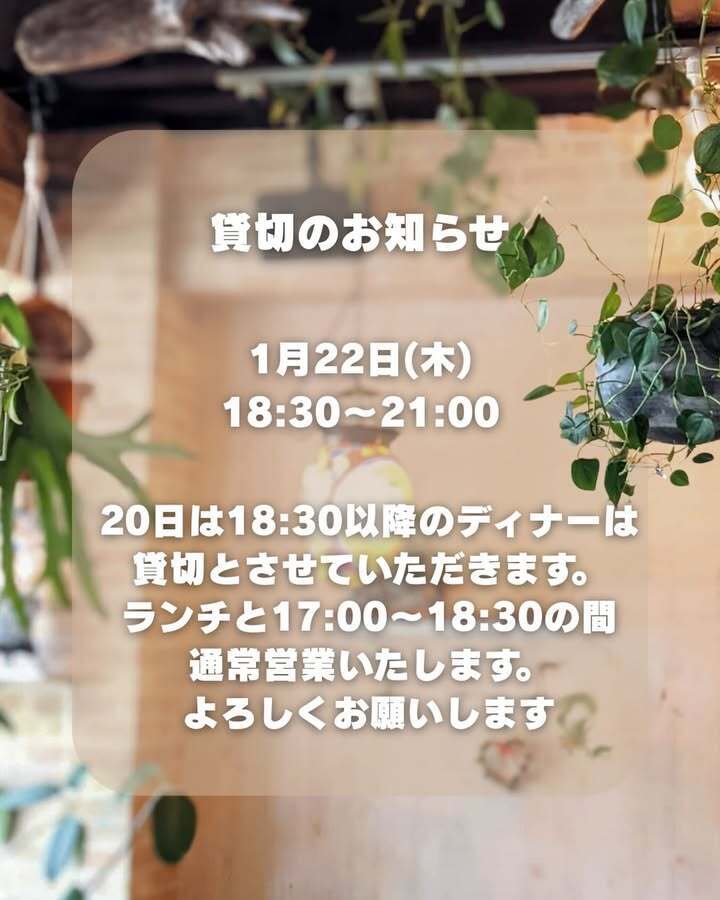 1月22日(木)18:30〜21:00の間は貸切です。