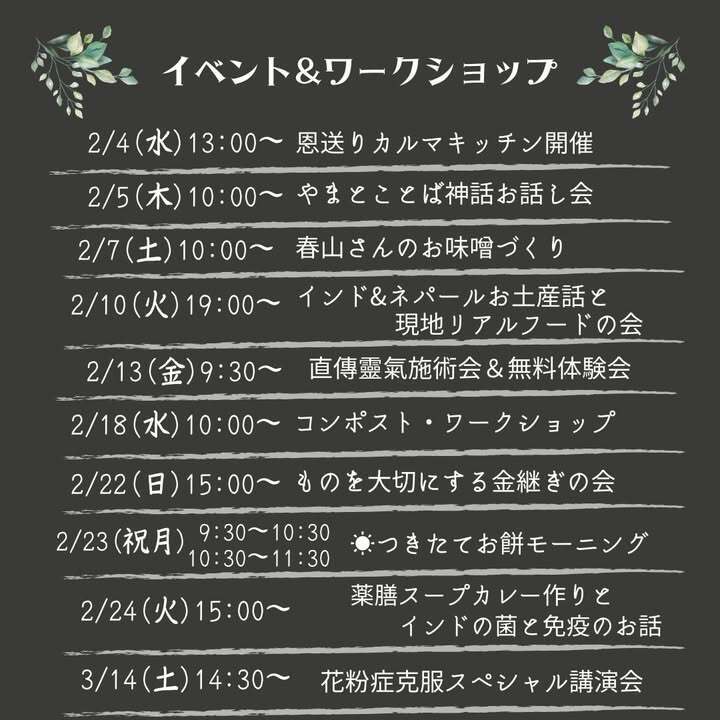 ナマステ。2月のイベント・ワークショップ情報です。