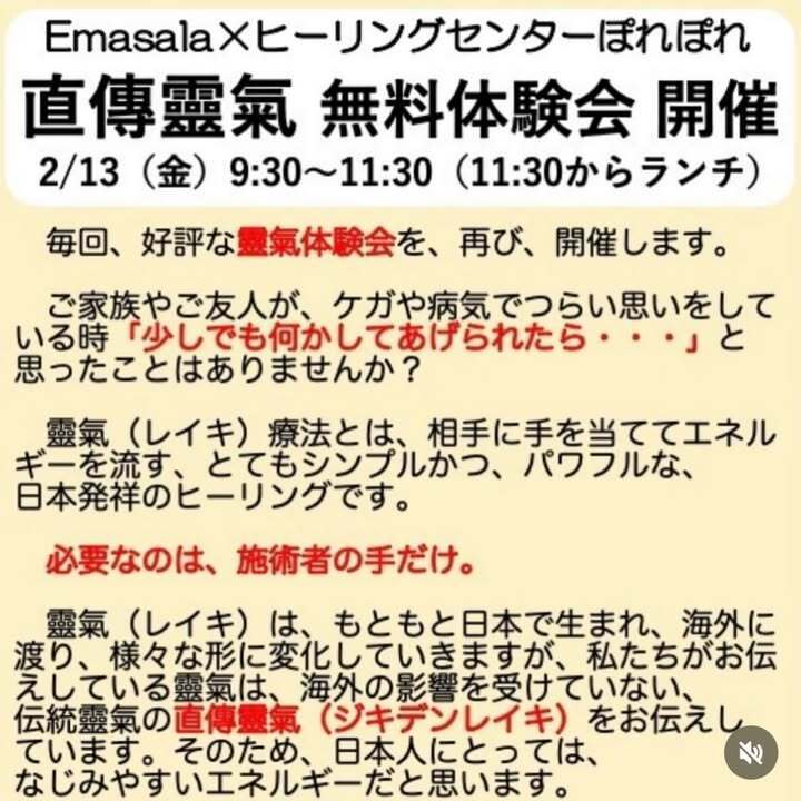 2/13(金)9:30〜 直傳靈氣施術会&無料体験会