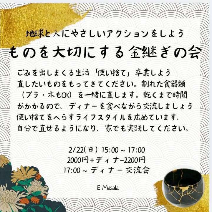 2/22(日)15:00〜 ものを大切にする金継ぎの会