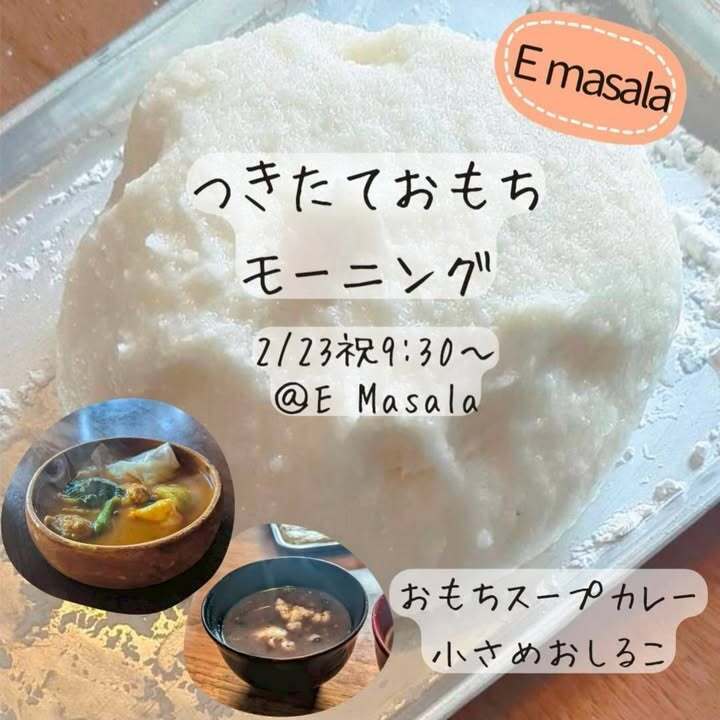 2/23(祝月)9:30〜/10:30〜 つきたてお餅モーニング☀︎
