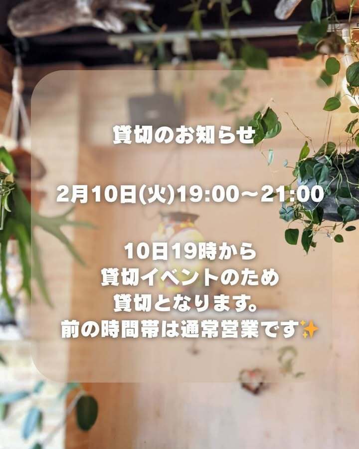 2/10(火)19時〜貸切営業となります!