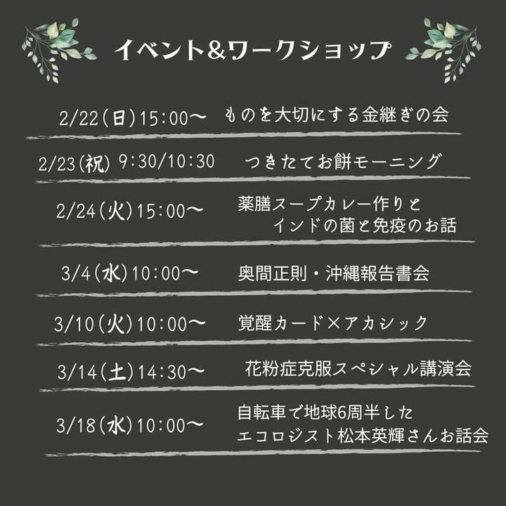イーマサラで開催する、イベント・ワークショップ情報です。ピンと来た会には是非ご参加ください。