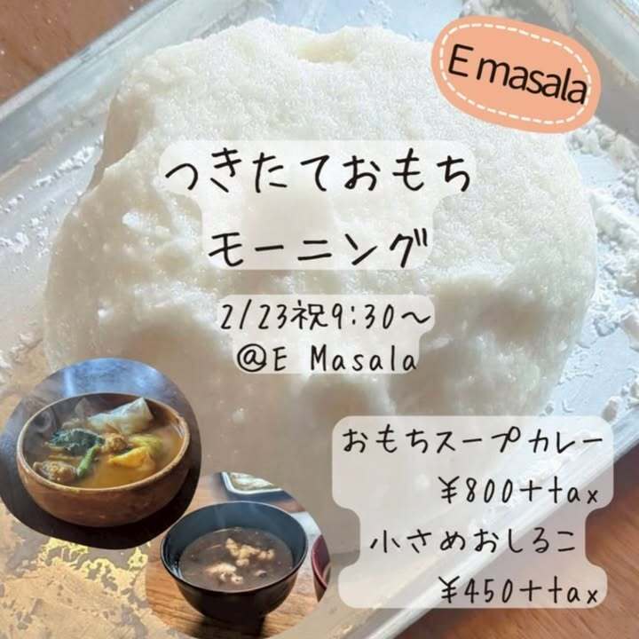 2/23(祝月)9:30〜/ 10:30〜 つきたてお餅モーニング