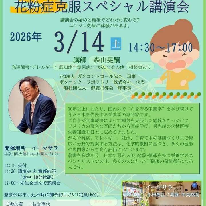 3/14(土)14:30〜 花粉症克服スペシャル講演会