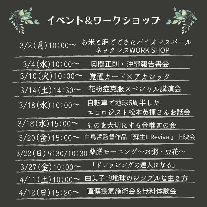 イーマサラで開催する、イベント・ワークショップ情報です。ピンと来た会には是非ご参加ください。