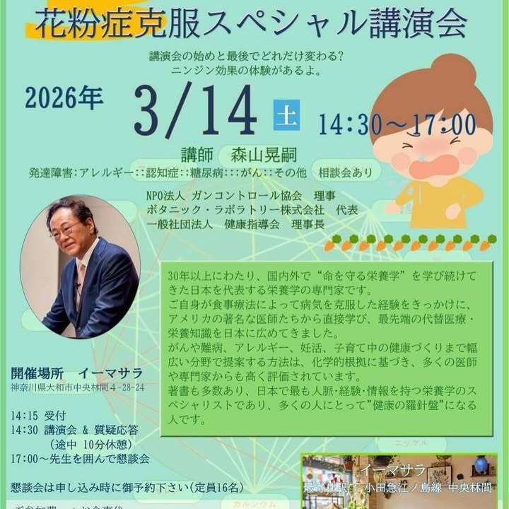 3/14(土)14:30〜 花粉症克服スペシャル講演会