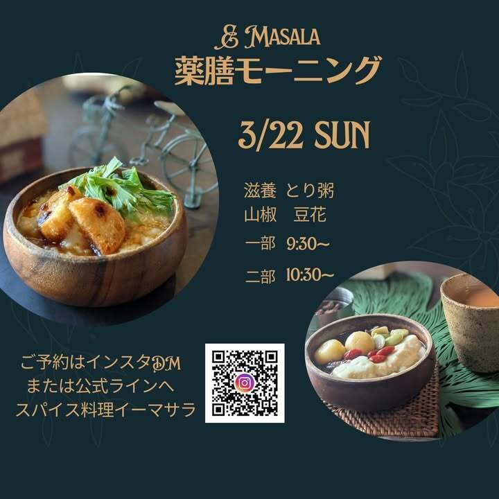 3/22(日)9:30〜/10:30〜 薬膳モーニング -お粥・豆花-