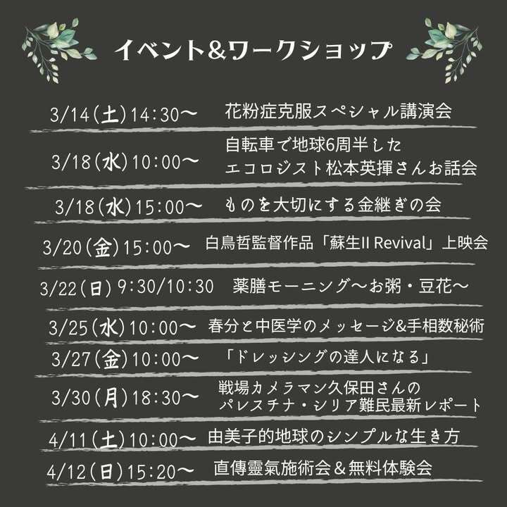 イーマサラで開催する、イベント・ワークショップ情報です。ピンと来た会には是非ご参加ください。