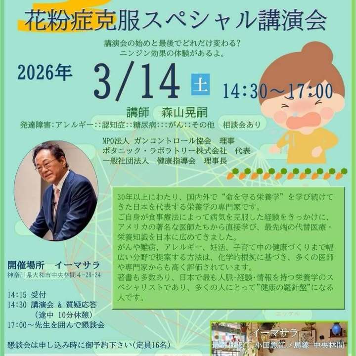 3/14(土)14:30〜 花粉症克服スペシャル講演会
