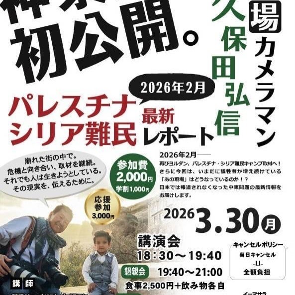 3/30(月)18:30〜 戦場カメラマン久保田さんのパレスチナシリア難民最新レポート