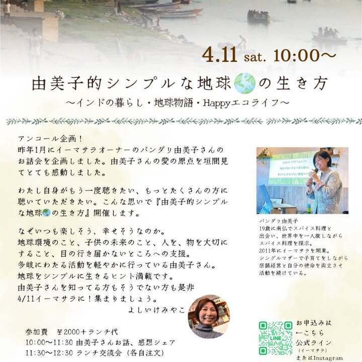 4/11(土)10:00〜 由美子的地球のシンプルな生き方