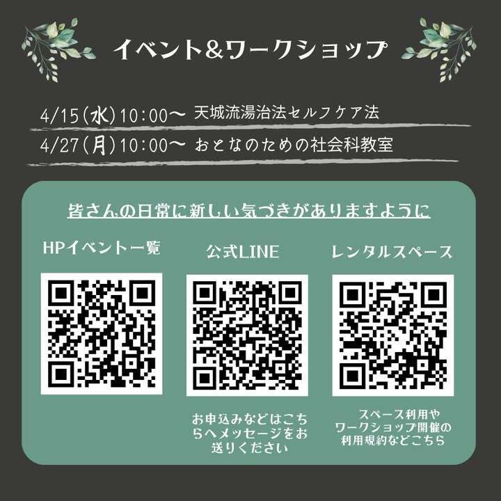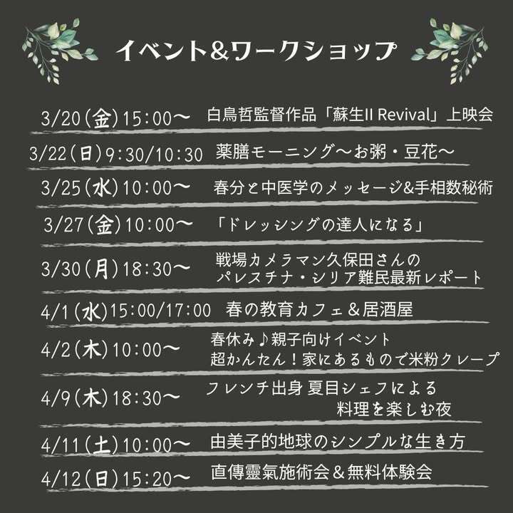 イーマサラで開催する、イベント・ワークショップ情報です。ピンと来た会には是非ご参加ください。