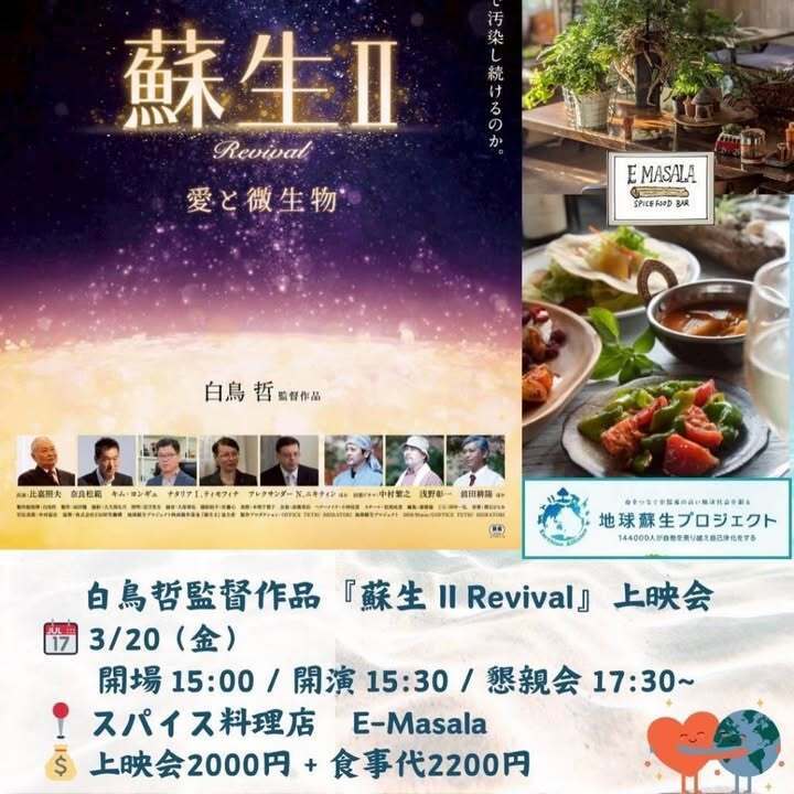 3/20(金)15:00〜 白鳥哲監督作品「蘇生Ⅱ Revival」上映会