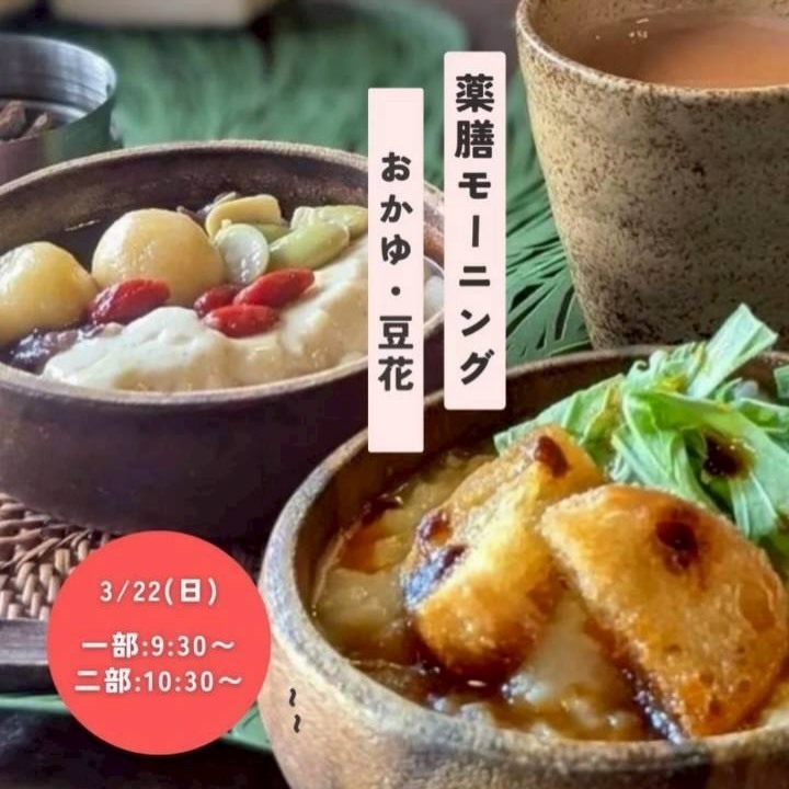 3/22(日)9:30〜/10:30〜 薬膳モーニング -お粥・豆花-