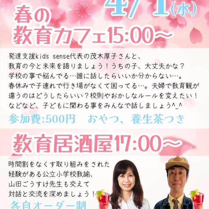 4/1(水)15:00〜/17:00〜春の教育カフェ 居酒屋