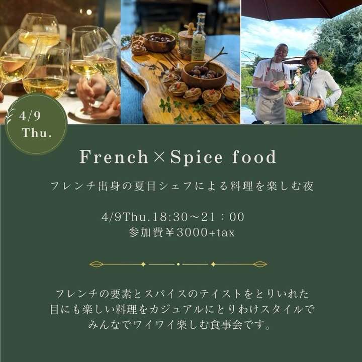 4/9(木)18:30〜 フレンチ出身 夏目シェフによる