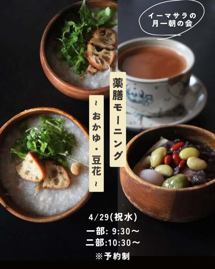 4月は29日昭和の日に薬膳モーニングやります😚