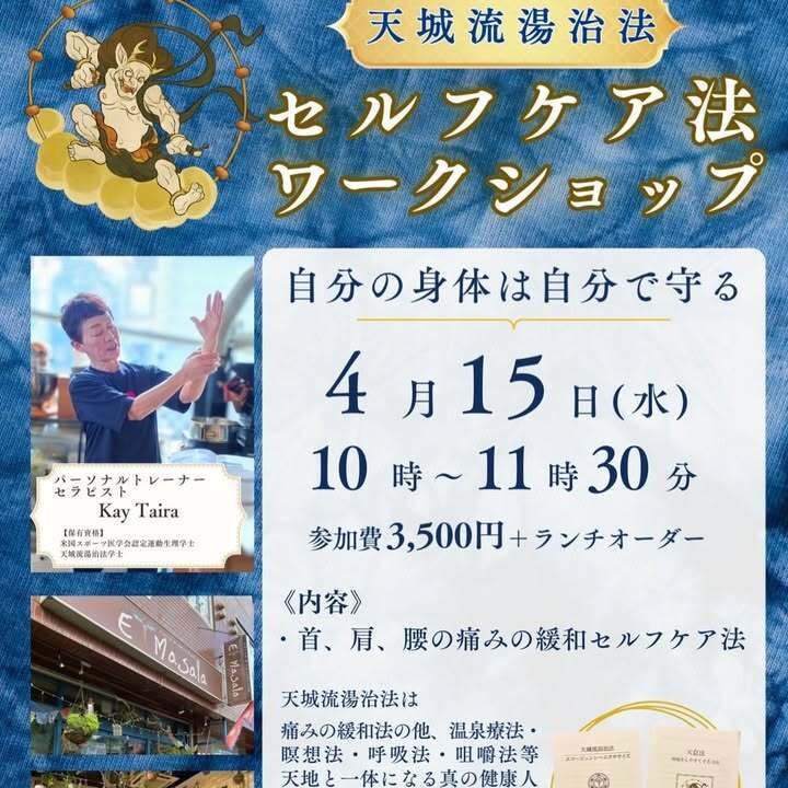 4/15(水)10:00〜 天城流湯治法セルフケア法は