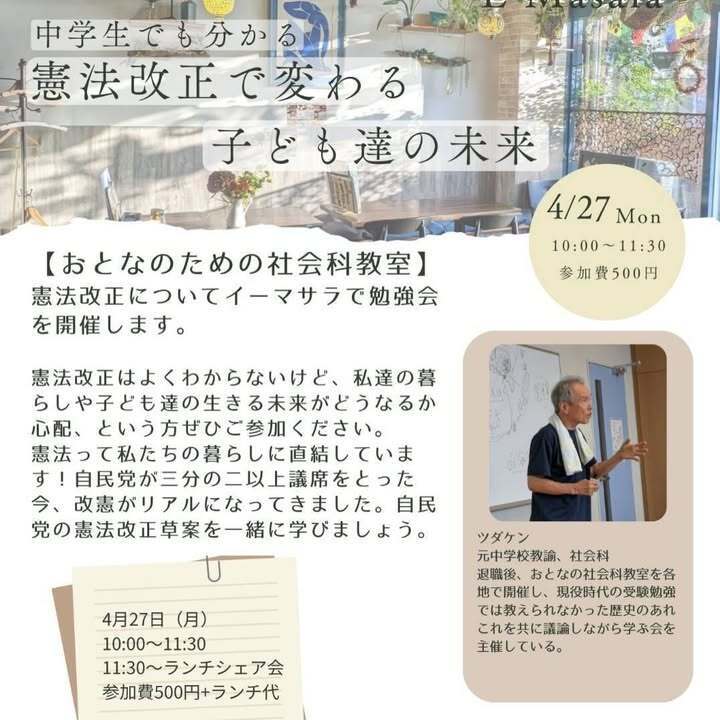 4/27(月)10:00〜 中学生でも分かる!憲法改正で変わる子どもたちの未来