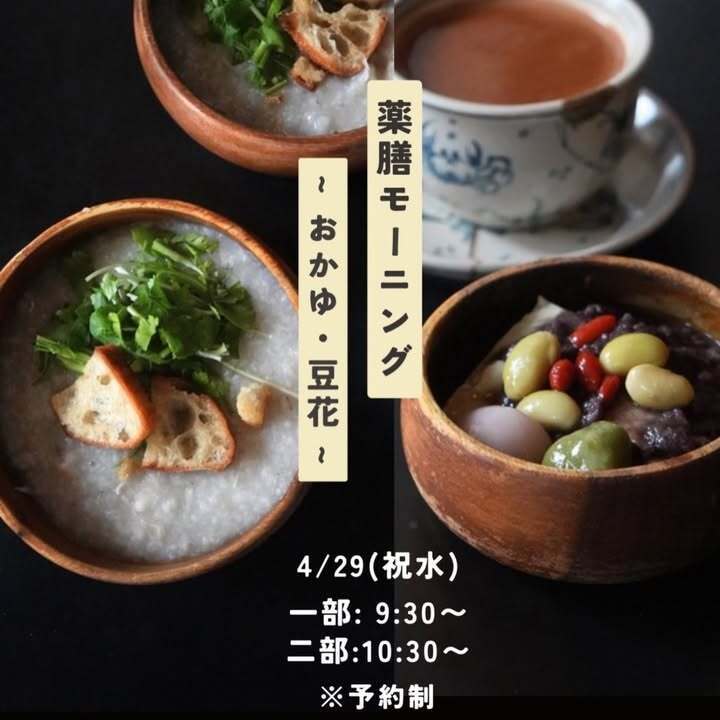 4/29(水)9:30〜/10:30〜 薬膳モーニング -お粥・豆花-