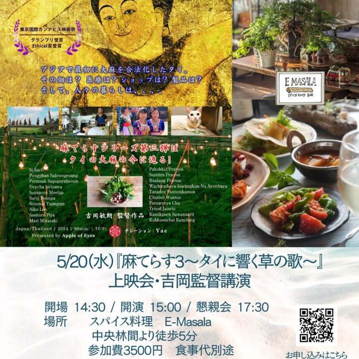 5/20(水)15:00〜 上映会•監督講演会『麻てらす3~タイに響く草の歌~』